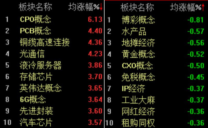 板块方面,CPO概念反攻领涨,源杰科技逼近20cm,中际旭创、联特科技、新易盛、光库科技、盛科通信均涨超10%,剑桥科技、东山精密封板。PCB概念金安国纪、生益科技涨停,南亚新材涨超10%,胜宏科技涨8%再创历史新高。