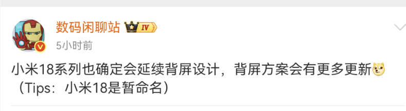 近日,知名数码博主数码闲聊站透露,小米下一代数字系列旗舰手机或将命名为小米18系列,且该系列将延续小米17系列备受关注的背屏设计,并在方案上带来更多创新升级。